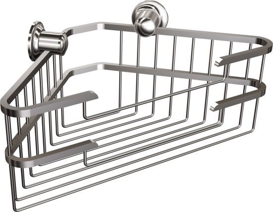Funkcjonalny narożny koszyk łazienkowy ANDEX, ułatwiający zagospodarowanie przestrzeni w łazience.