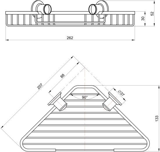 Nowoczesna mydelniczka narożna, wykonana z wysokiej jakości metalu odpornego na korozję.