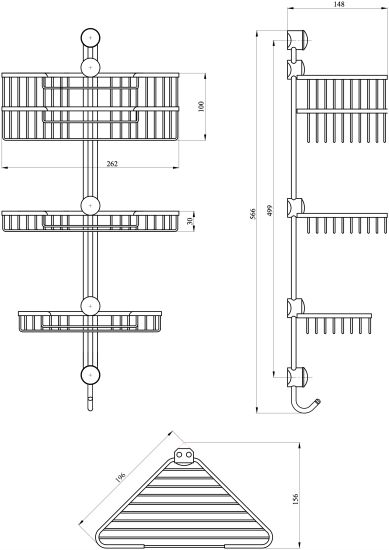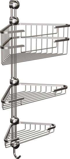 Funkcjonalny potrójny narożny koszyk łazienkowy ANDEX, ułatwiający zagospodarowanie przestrzeni w łazience.