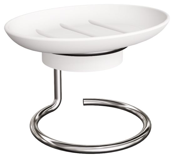 Nowoczesna mydelniczka stojąca, wykonana z wysokiej jakości metalu odpornego na korozję.