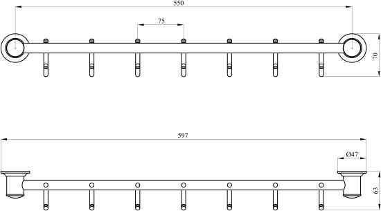 Nowoczesny wieszak na ręczniki ANDEX Classic, odporny na korozję dzięki specjalnym powłokom galwanicznym.