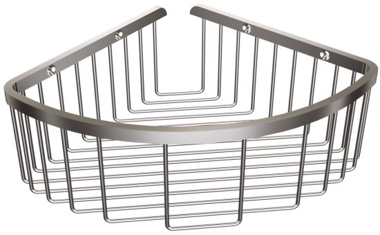Funkcjonalny koszyk łazienkowy półokrągły ANDEX, ułatwiający zagospodarowanie przestrzeni w łazience.