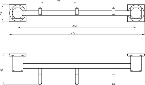 Nowoczesny wieszak na ręczniki ANDEX Modern, odporny na korozję dzięki specjalnym powłokom galwanicznym.