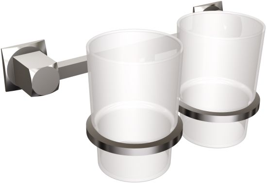 Nowoczesny podwójny kubeczek wiszący ANDEX Modern, osadzony w uchwycie odpornym na korozję dzięki specjalnym powłokom galwanicznym.