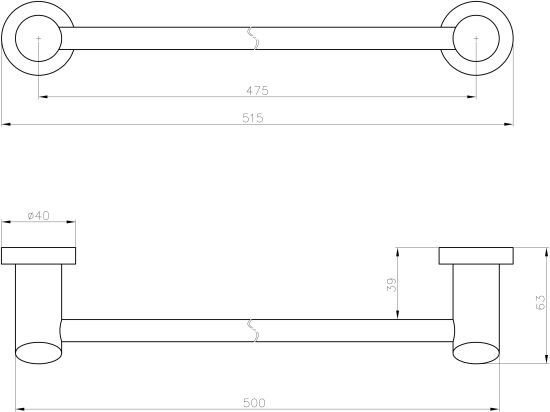Nowoczesny reling na ręczniki ANDEX Novel, wykonany z wysokiej jakości stali nierdzewnej odpornej na korozję.