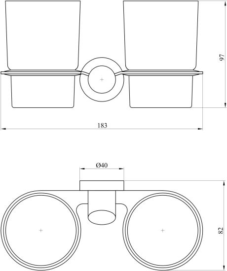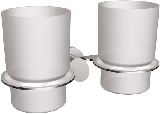Nowoczesny kubeczek wiszący podwójny ANDEX Novel, osadzony w uchwycie wykonanym z wysokiej jakości stali nierdzewnej.