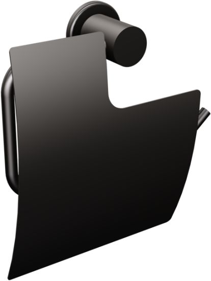 Nowoczesny uchwyt na papier toaletowy z osłonką ANDEX Sanibella, wykończony w designerskim, matowym czarnym kolorze.