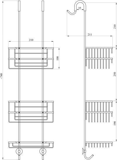 Funkcjonalny potrójny koszyk łazienkowy ANDEX, ułatwiający zagospodarowanie przestrzeni w łazience.