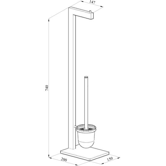 Funkcjonalny stojący wieszak na papier toaletowy, zintegrowany ze szczotką do WC wykonany z wysokiej jakości stali nierdzewnej.