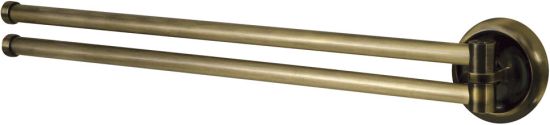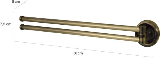 Elegancki, dwuramienny wieszak na ręczniki BISK Deco, utrzymany w modnej stylistyce retro, wykonany z wytrzymałego metalu w kolorze antycznego mosiądzu.