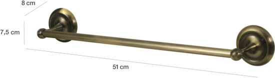 Elegancki reling na ręczniki BISK Deco, utrzymany w modnej stylistyce retro, wykonany z wytrzymałego metalu w kolorze antycznego mosiądzu.