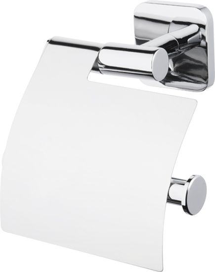 Nowoczesny uchwyt na papier toaletowy z klapką BISK Forte, wykonany z wysokiej jakości metalu o eleganckim, chromowym wykończeniu.