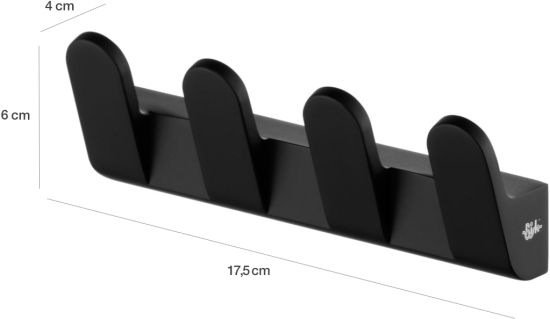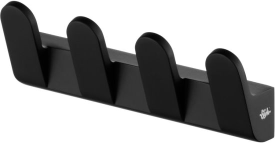 Funkcjonalna listwa z czterema haczykami BISK Futura Black, wykonana z wysokiej jakości metalu o eleganckim, czarnym wykończeniu.