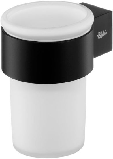 Praktyczny kubeczek wiszący BISK Futura Black, wykonany z matowego szkła i metalu o eleganckim, czarnym wykończeniu.