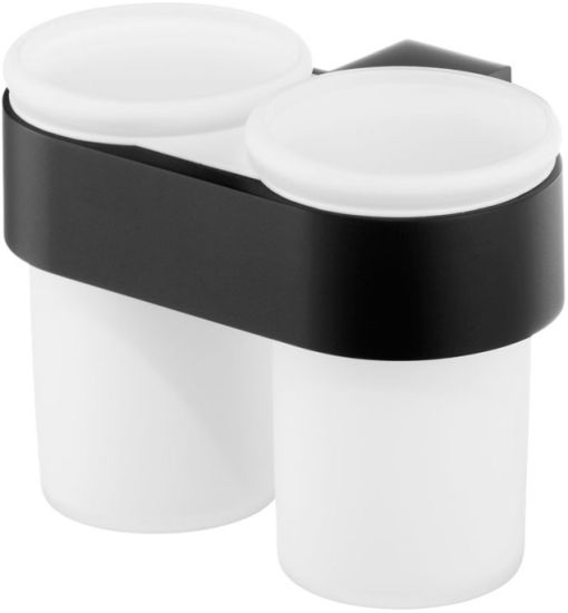 Nowoczesny podwójny kubeczek wiszący BISK Futura Black, wykonany z matowego szkła i metalu o eleganckim, czarnym wykończeniu.