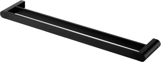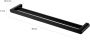 Nowoczesny podwójny wieszak na ręczniki BISK Futura Black, wykonany z wysokiej jakości metalu o eleganckim, czarnym wykończeniu.