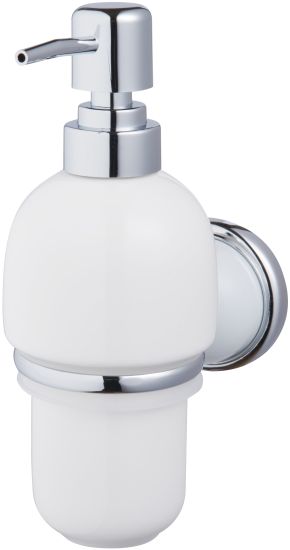 Oryginalny dozownik do mydła w płynie BISK Grenada, wykonany z wysokiej jakości ceramiki i metalu o eleganckim, chromowanym wykończeniu.