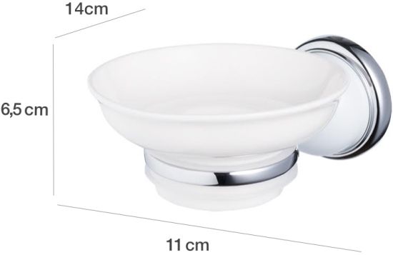 Praktyczna wisząca mydelniczka BISK Grenada, wykonana z wysokiej jakości metalu o eleganckim, chromowanym wykończeniu oraz ceramiki.