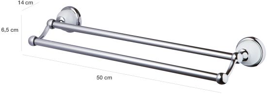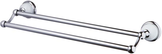 Praktyczny podwójny wieszak na ręczniki BISK Grenada, wykonany z wytrzymałego metalu o eleganckim chromowanym wykończeniu.