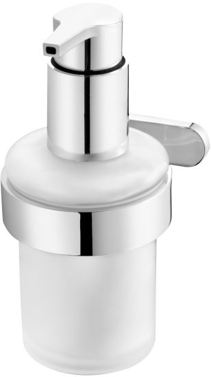 Nowoczesny dozownik mydła w płynie BISK Natura, wykonany z wysokiej jakości metalu o eleganckim, chromowym wykończeniu.