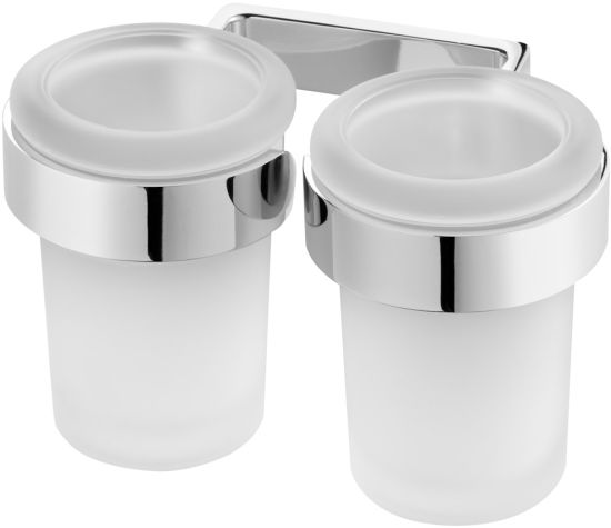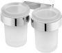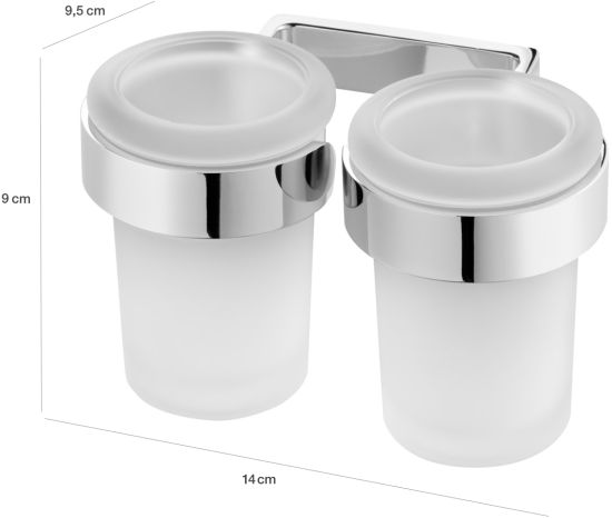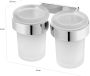 Nowoczesny podwójny kubeczek wiszący BISK Natura, wykonany z matowego szkła i metalu o eleganckim, chromowym wykończeniu.