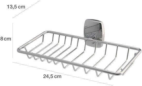Praktyczna ażurowa mydelniczka BISK Oregon, wykonana z wysokiej jakości metalu o eleganckim, chromowanym wykończeniu.
