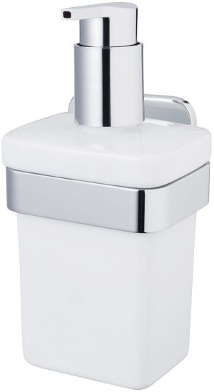Oryginalny dozownik do mydła w płynie BISK Tore, wykonany z wysokiej jakości metalu o eleganckim, chromowanym wykończeniu.