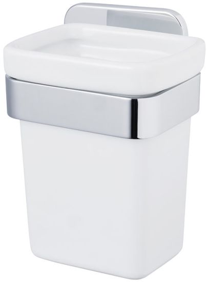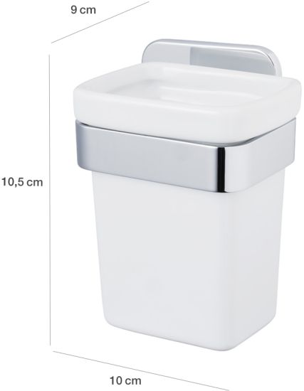 Praktyczny, wiszący kubeczek BISK Tore, wykonany z ceramiki i metalu o eleganckim, chromowanym wykończeniu.