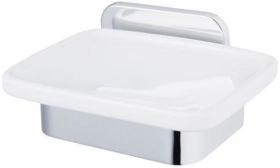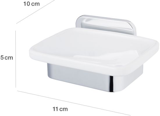 Nowoczesna, wisząca mydelniczka BISK Tore, wykonana z wysokiej jakości metalu o eleganckim, chromowanym wykończeniu oraz ceramiki.