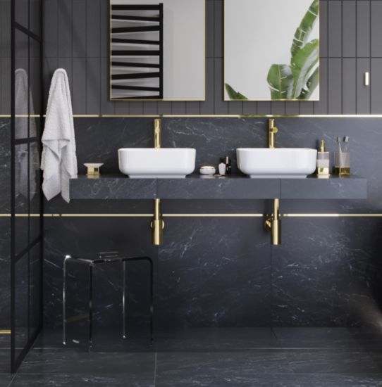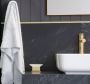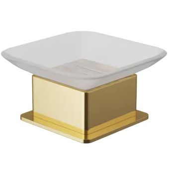 Elegancka, stojąca mydelniczka EXCELLENT Riko Gold, wykonana ze szkła matowego i mosiądzu o eleganckim złotym wykończeniu.