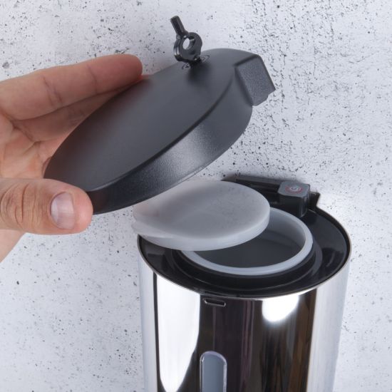 • zabezpieczenie zamkiem w górnej pokrywie zapobiega dostępowi nieuprawnionych osób do zasobnika z mydłem