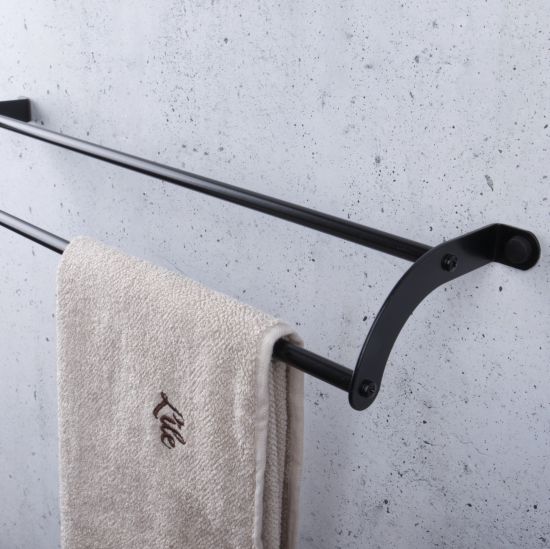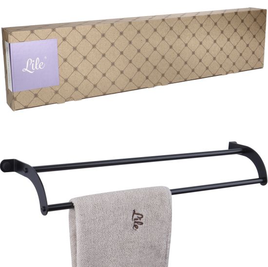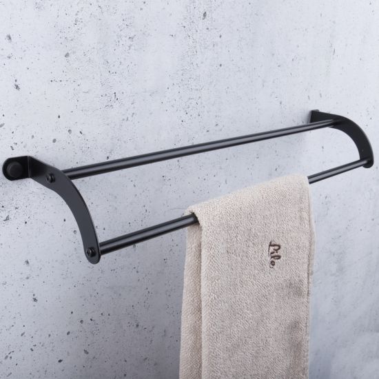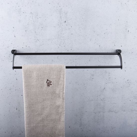 Nowoczesny podwójny reling na ręczniki, wykonany z wysokiej jakości stali nierdzewnej odpornej na korozję.
