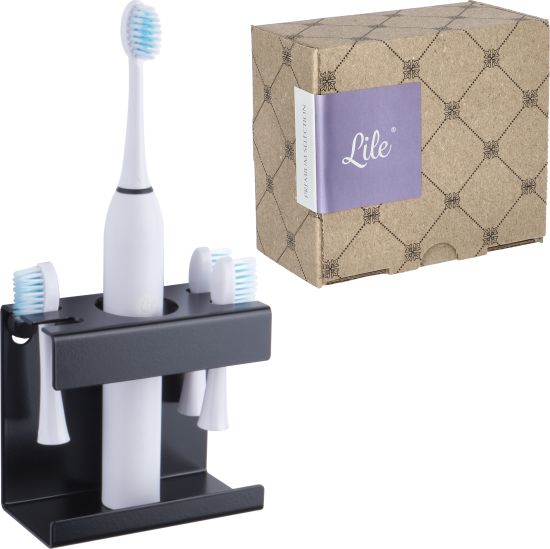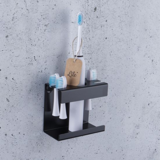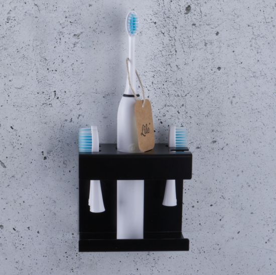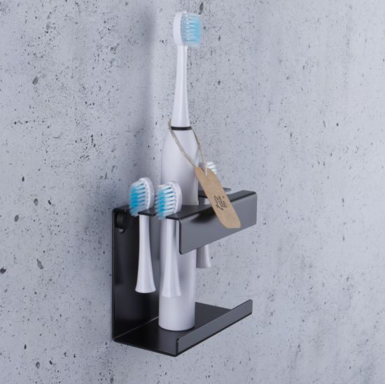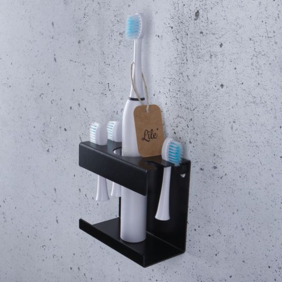 Praktyczny uchwyt na szczoteczkę elektryczną i cztery końcówki, wykonany ze stali nierdzewnej, odpornej na korozję.