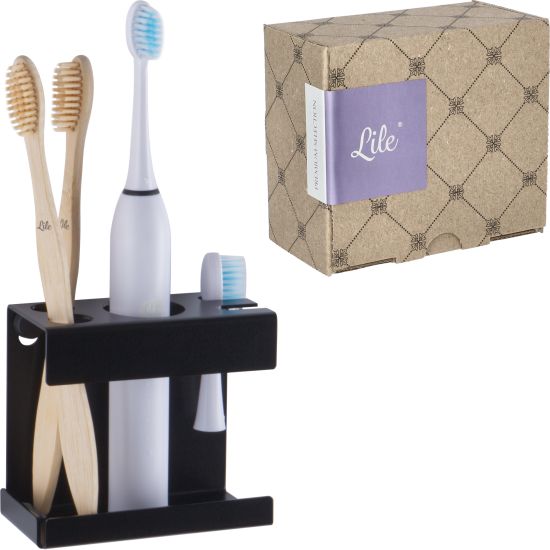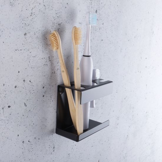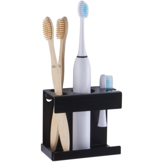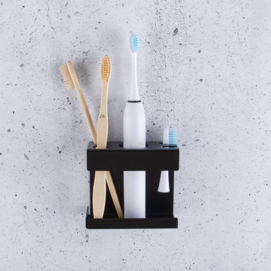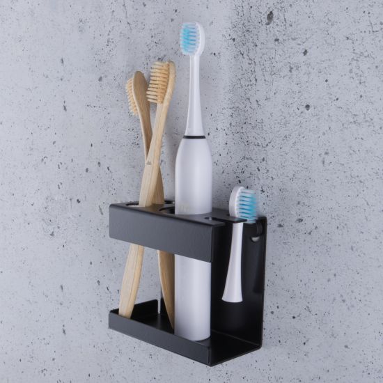 Praktyczny uchwyt na szczoteczkę elektryczną, dwie końcówki i dwie szczoteczki, wykonany z wysokiej jakości stali nierdzewnej.