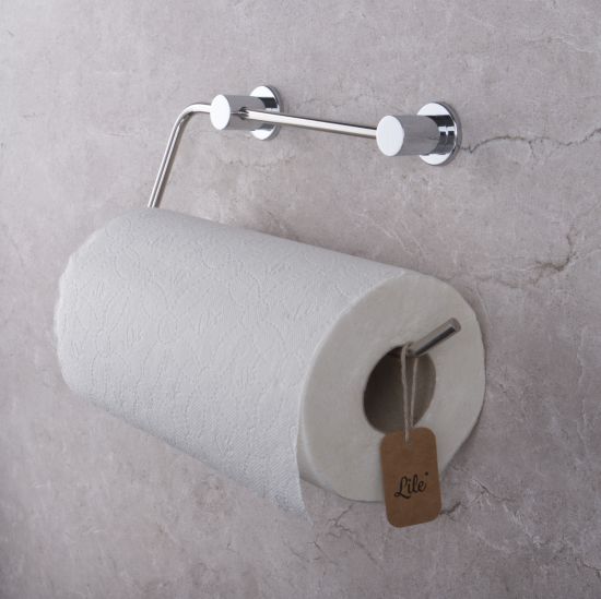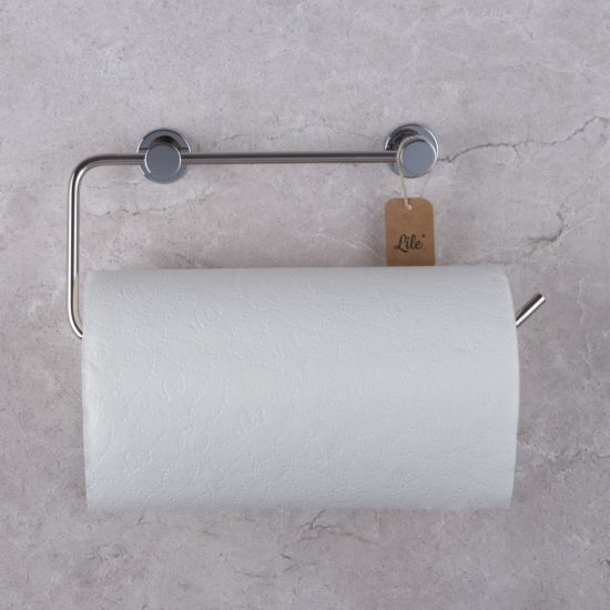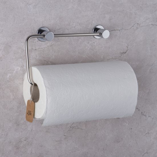 Praktyczny uchwyt na ręcznik papierowy, wykonany z wysokiej jakości metalu, odpornego na korozję dzięki specjalnym powłokom galwanicznym.