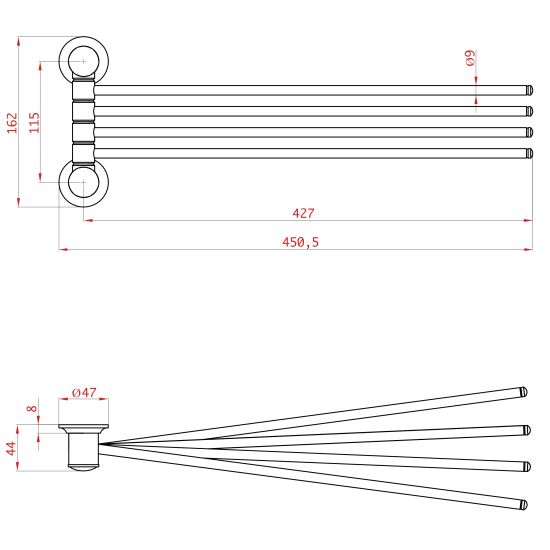 Nowoczesny wieszak na ręczniki, odporny na korozję dzięki specjalnym powłokom galwanicznym.