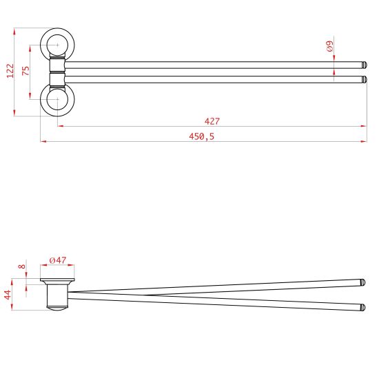 Nowoczesny wieszak na ręczniki, odporny na korozję dzięki specjalnym powłokom galwanicznym.