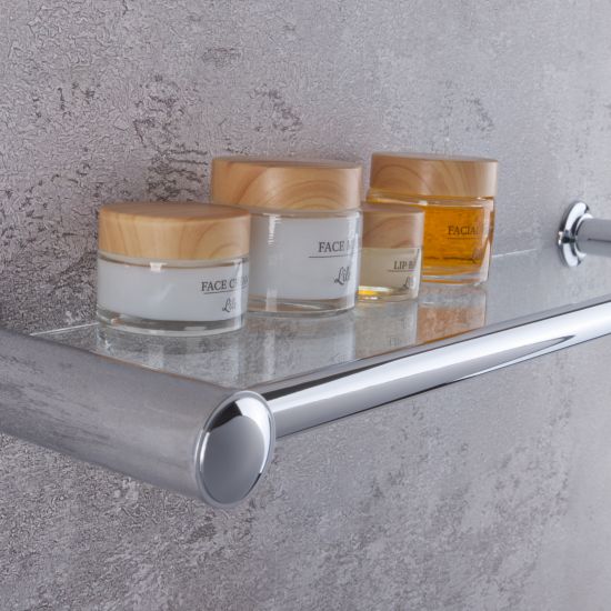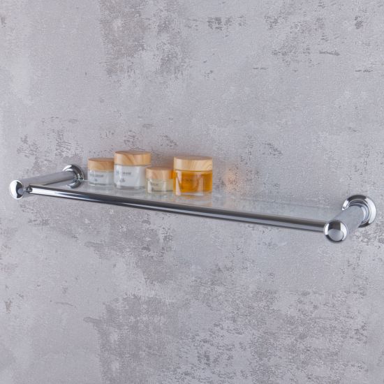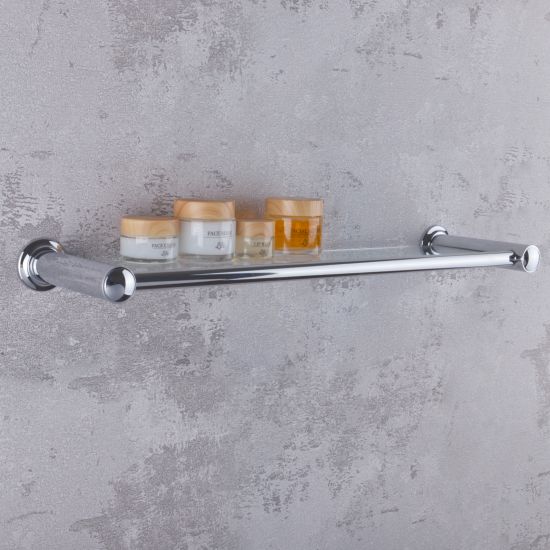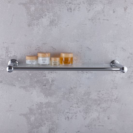 Nowoczesna półka łazienkowa, odporna na korozję, stanowiąca funkcjonalne dopełnienie aranżacji łazienki.