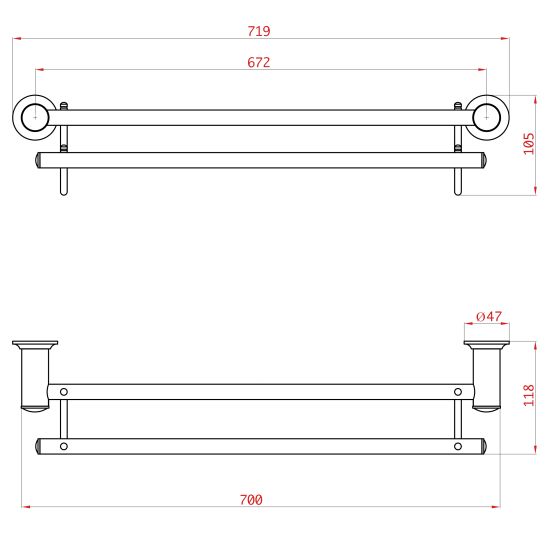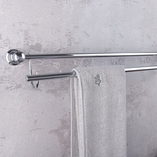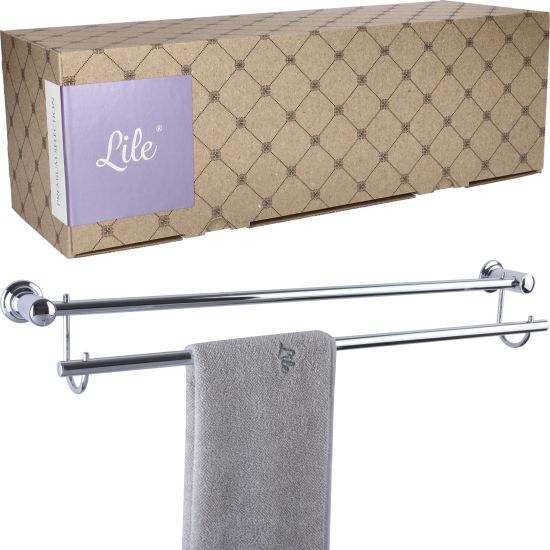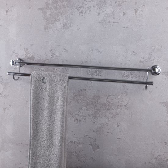 Nowoczesny podwójny reling na ręczniki, odporny na korozję dzięki specjalnym powłokom galwanicznym.