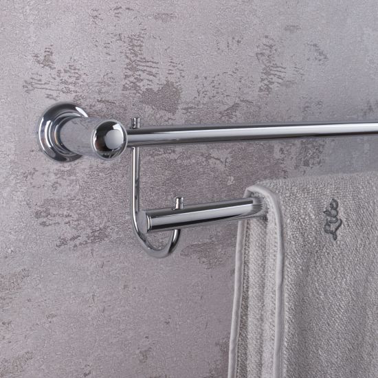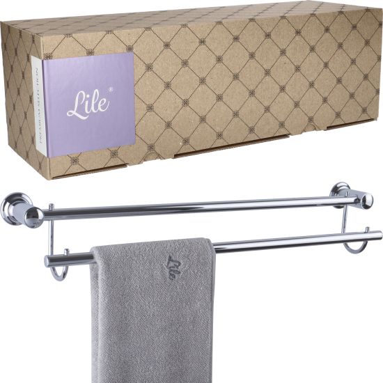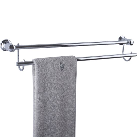 Nowoczesny podwójny reling na ręczniki, odporny na korozję dzięki specjalnym powłokom galwanicznym.