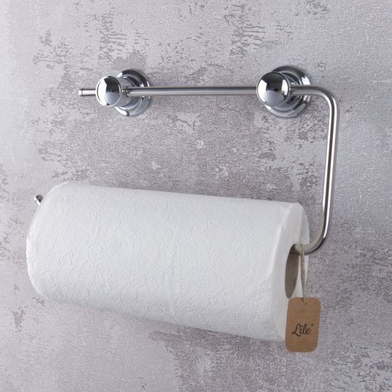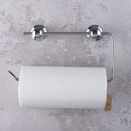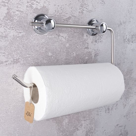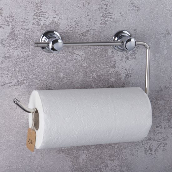 Wysokiej jakości uchwyt na ręcznik papierowy, wykonany z wysokiej jakości metalu, odpornego na korozję dzięki specjalnym powłokom galwanicznym.