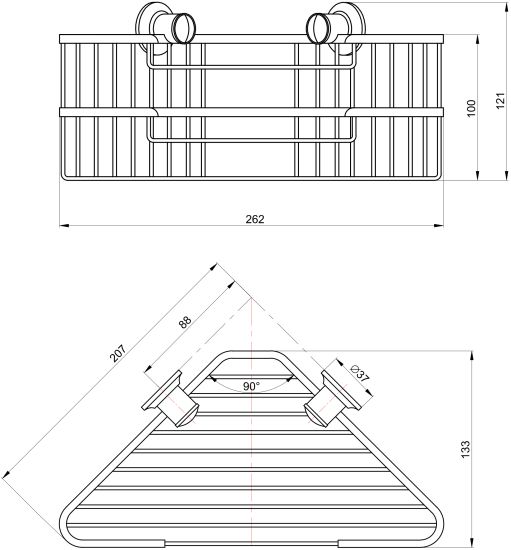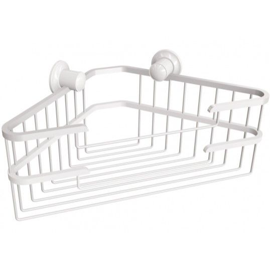 Funkcjonalny narożny koszyk łazienkowy ANDEX, ułatwiający zagospodarowanie przestrzeni w łazience.