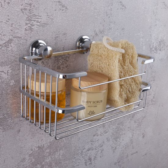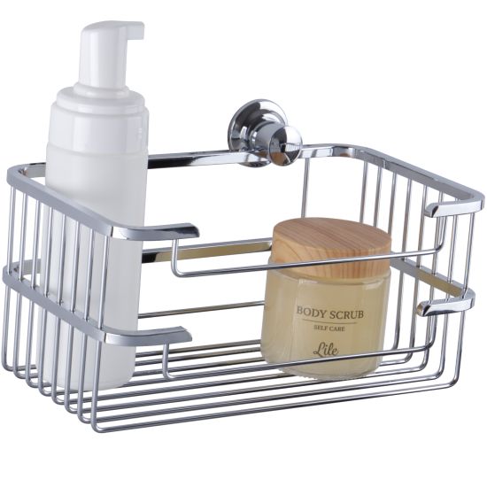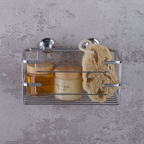 Funkcjonalny wiszący koszyk łazienkowy, ułatwiający zagospodarowanie przestrzeni w łazience.