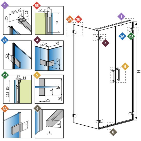 | Wymiar kabiny do osi szyby (Y1): | 1073-1079 mm, 1173-1179 mm, 773-779 mm, 873-879 mm, 973-979 mm |