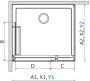 A - w przypadku montażu na brodziku weź pod uwagę wymiar A1 i A2 - jest to wymiar zewnętrzny pasującego brodzika.