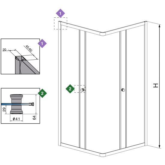 | Wymiar zewnętrzny kabiny (X): | 790-805 mm, 890-905 mm |