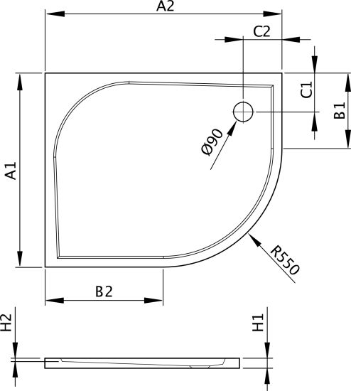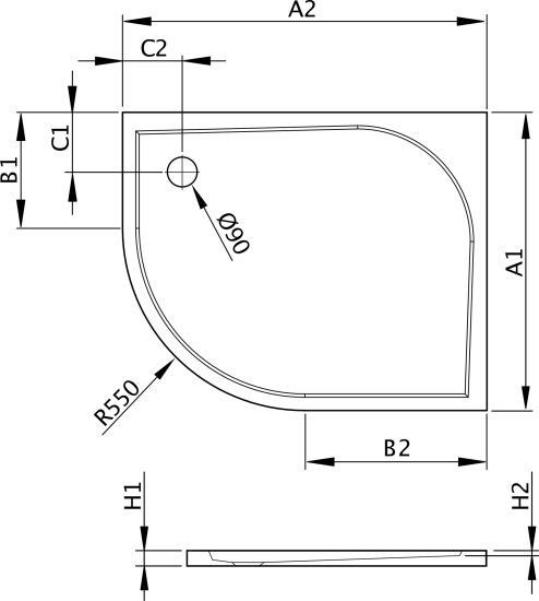 • otwór na syfon o średnicy 90mm