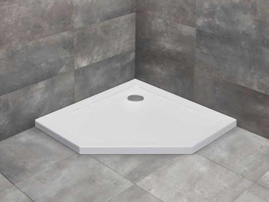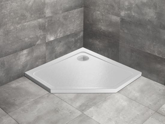 • brodzik płytki dedykowany do kompletowania z wysokimi kabinami pięciokątnymi