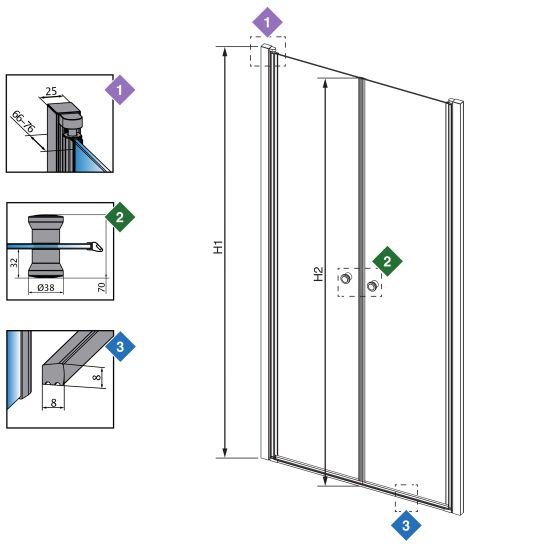 | Wysokość drzwi (H2): | 1950 mm |