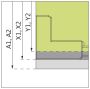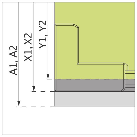 X - wymiar X1 i X2 to wymiar zewnętrzny kabiny (licząc od ściany do zewnętrznego obrysu profilu, zawiasu lub klamry). Jeśli chcesz, aby zewnętrzna krawędź profilu, zawiasu lub klamry kabiny była zamontowana na krawędzi płytek/fudze weź pod uwagę ten wymiar.